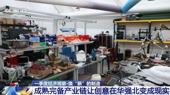 总台央视记者张丛婧:这就是我们刚刚组装出的一架无人机,所有配件都是在这个楼里买到的,从一堆零散配件到这样的整机,只用了不到两个小时的时间。现在我们就来试一下它的功能到底如何,看它能不能飞起来。